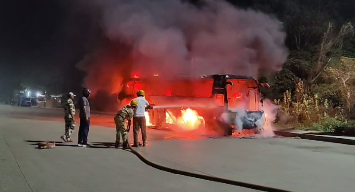 निरसा: झारखण्ड बंगाल बॉर्डर पर मैथन थाने के पास NH 2 पर पम्मी नामक बस में अचानक आग लग गई। आग की लपटें इतनी तेज रही कि बस धु-धू कर जल उठा, आस पास के लोगो ने अग्नि शमन को जब तक सूचना दिया तब तक पुरा बस खाक मे ताबद्दील हो चुका था।