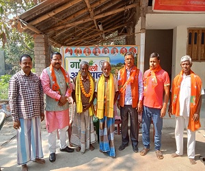 पाकुड़ : गांव चलो अभियान के तहत नवीनगर मंडल अंतर्गत कदमसार गांव के मतदान केंद्र संख्या 379-380 पर दो दिवसीय प्रवास योजना के तहत प्रवासी कार्यकर्ता-सह-जिला उपाध्यक्ष हिसाबी राय ने मतदान केंद्र के अध्यक्ष,संयोजक,सह संयोजक,प्रभारी साथ बैठक कर बुथ समिति एवं पन्ना प्रमुखों के कार्यों का निर्धारण किया गया।बैठक में प्रमुख रूप से मंडल अध्यक्ष अरुण चौधरी,महामंत्री बहादुर मंडल एवं अल्पसंख्यक मोर्चा के प्रदेश कार्यसमिति सदस्य सादेकुल आलम,अक्षय मंडल सहित दर्जनों लाभुक मौजूद थे। प्रवासी कार्यकर्ता-सह-भाजपा जिला उपाध्यक्ष हिसाबी राय ने प्रधानमंत्री के नौ वर्षों के स्वर्णिम कार्यकाल के संबंध में सभी लाभुकों को उनकी योजनाओं की जानकारी दिया साथ ही घर-घर संपर्क कर लाभार्थियों से संवाद स्थापित किया । एवं उक्त शक्ति केंद्र पर जनसंघ के समय के कार्यकर्ता निवारण मंडल एवं धनंजय मंडल को माल्यार्पण कर एवं अंग वस्त्र प्रदान कर उन्हें सम्मानितकिया गया। कार्यक्रम में अक्षय मंडल, निरेन मंडल ,मलिन मंडल ,अरुण मंडल, सुकोमल मंडल, गौर मंडल, निखिल मंडल, देवेन मंडल विशु मंगल, आनंद ,रंजीत ,हाबल आदि मौजूद थे।