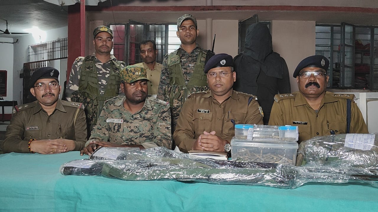 सोनु भारती/चतरा : एसपी राकेश रंजन के नेतृत्व में सुरक्षाबलों ने टीएसपीसी नक्सलियों को दिया बड़ा झटका। वशिष्टनगर जोरी थाना क्षेत्र के नारायणतरी ईलाके में हुए पुलिस-नक्सली मुठभेड़ में शामिल दुर्दांत नक्सली गिरफ्तार। एरिया कमांडर सहेंद्र गंझू दस्ते का मारक सदस्य राजदेव सिंह भोक्ता उर्फ रामचंद्र उर्फ जेठा गंझू गिरफ्तार। दो लोडेड एसएलआर पुलिस राइफल, 03 एसएलआर राइफल का मैगजीन, एसएलआर राइफल का 7.62 एमएम का 210 चक्र जिंदा कारतूस, 02 कैमोफ्लाइज मैगजीन पाउच, 01 एंड्राइड मोबाइल, एसएलआर राइफल का 7.62 एमएम का 09 खोखा, इंसास राइफल का 5.56 एमएम का 07 खोखा बरामद। गिरफ्तार नक्सली जेठा ने ही अफीम विनष्टीकरण अभियान से लौट रहे पुलिस पार्टी को परिलक्षित कर चलाई थी गोली। मौके पर एरिया कमांडर सहेंद्र गंझू समेत 16 नक्सलियों का दस्ता था मौजूद। सदर थाना क्षेत्र के हेठबैरियों से हुई गिरफ्तारी। हमले में सदर थाना के जवान सिकंदर सिंह व जोरी थाना के जवान सुकन राम हुए थे शहीद। वहीं आरक्षी आकाश सिंह गोली लगने से हो गए थे बुरी तरह जख्मी। एसडीपीओ संदीप सुमन ने प्रेस कांफ्रेंस कर दी जानकारी। कहा नक्सलियों के संरक्षण में सुदूरवर्ती इलाकों में हो रही है अफीम की खेती। अफीम के पैसे से आत्मनिर्भर बन रहे नक्सली, अफीम उत्पादन के लिये तस्करों और माफियाओं को देते हैं आर्थिक सहयोग। एसडीपीओ का बयान, नक्सलियों के विरुद्ध जारी रहेगा अभियान। अफीम माफियाओं का भी होगा खात्मा।