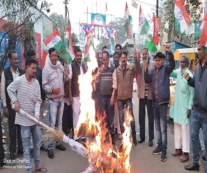 पाकुड़ : गुरुवार को पाकुड़ ज़िला कांग्रेस पार्टी की ओर से शहर के अटल चौक पर कांग्रेस जिला अध्यक्ष श्रीकुमार सरकार के नेतृत्व में भाजपा सह मोदी सरकार का पुतला दहन किया गया।इस अवसर पर श्री सरकार ने कहा की 2017 में, जब चुनावी बांड योजना को वित्त विधेयक के रूप में पेश किया गया था,तो भारतीय राष्ट्रीय कांग्रेस सबसे पहले इसकी अपारदर्शी, अलोकतांत्रिक और हानिकारक प्रकृति की स्पष्ट रूप से निंदा की थी। भारतीय राष्ट्रीय कांग्रेस इस कुटिल चाल के खिलाफ संसद के भीतर और बाहर अपनी लड़ाई लगातार लड़ रही थी। कारणवश काला धन रूपांतरण योजना को असंवैधानिक मानते हुए आज के सुप्रीम कोर्ट ने फैसला सुनाया है जो जानत के हित में है। अब जनता के सामने बीजेपी को फंडिंग कहा से किनके द्वारा प्राप्त होती है इसका पर्दाफाश होगा। कांग्रेस पार्टी इस फैसले का तहे दिल से स्वागत किया है। श्री सरकार ने कहा की माननीय सर्वोच्च न्यायालय का कांग्रेस पार्टी आभार व्यक्त करती है। मोके पर जिला प्रखंड सह वीस सूत्री अध्यक्ष मानसारुल हक, प्रवक्ता मुख्तार हुसैन, जिला कोषाध्यक्ष असद हुसैन, सोशल मीडिया प्रभारी पियारूल इस्लाम,पूर्व प्रखंड अध्यक्ष अफजल हुसैन, निरंजन मिश्रा, कृष्ण यादव, आसिफ इकबाल, वंश राज गोप, आबूताहिर सेख, रामविलास महतो, मीरजहान विश्वास, अब्दुल बासित, तजमुल शेख, मानान शेख, विक्की भगत, सुमन चौबे, विजेंद्र गोप,मुकलेसुर रहमान, कमरुल शेख,मिथुन मरांडी, मोतिउर रहमान उपस्थित थे ।
