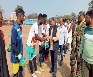 हिरणपुर (पाकुड़ ) : आदिवासी ऐभेन गांवता क्लब के द्वारा शुक्रवार को तीन दिवसीय फुटबॉल खेल का शुभारम्भ गोपालपुर मैदान में किया गया। जिसका उद्घाटन लिट्टीपाड़ा विधायक दिनेश मरांडी ने फुटबॉल को किक मारकर किया। इस प्रतियोगिता में झारखण्ड सहित बिहार , बंगाल , उड़ीसा आदि राज्यो के नामी गिरामी टीम भाग ले रहा है। विधायक ने सभी खिलाड़ियो से हाथ मिलाकर परिचय प्राप्त किया। इसके बाद खेल का शुभारम्भ किया। प्रारंभिक मैच इलाहाबाद टीम व लेक टाउन कोलकाता के बीच खेला गया। जिसमें कोलकाता टीम ने विजयी हासिल किया। उपस्थित लोगों को सम्बोधित करते हुए विधायक ने कहा कि फुटबॉल खेल आदिवासियों में काफी लोकप्रिय खेल रहा है।खेल को निष्ठा व ईमानदारी पूर्वक खेला जाना है।खेल से आप राज्य व देश का नाम रौशन कर सकते है। आयोजक कमिटी के अध्यक्ष रामजी हांसदा ने बताया कि इस प्रतियोगिता में देश के नामीगिरामी टीम भाग ले रहे है। इसमे विजेता टीम को पांच लाख , उप विजेता चार व सेमीफाइनल में पहुंचे टीमो को एक -एक लाख की राशि देकर पुरस्कृत किया जाएगा। इस मौके पर झामुमो जिला उपाध्यक्ष समद अली , जिप उपाध्यक्ष अशोक भगत , सर्वजीत सिंह , बीस सूत्री अध्यक्ष इसहाक अंसारी , पगान मुर्मू , पप्पू अंसारी , सनातन मुर्मू , कंचन हांसदा , मोनू हांसदा , वकील मुर्मू , सामएल मुर्मू , पगान हेम्ब्रम , बबलु राय , बाबूजी मरांडी , कालू साहा , चन्दन मण्डल , छोटू मोमिन आदि उपस्थित थे।