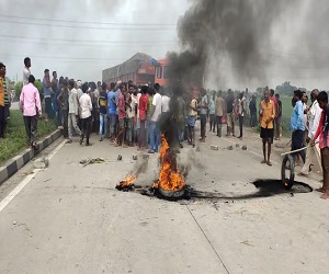 सड़क पर टायर जलाकर शुरू किया प्रदर्शन