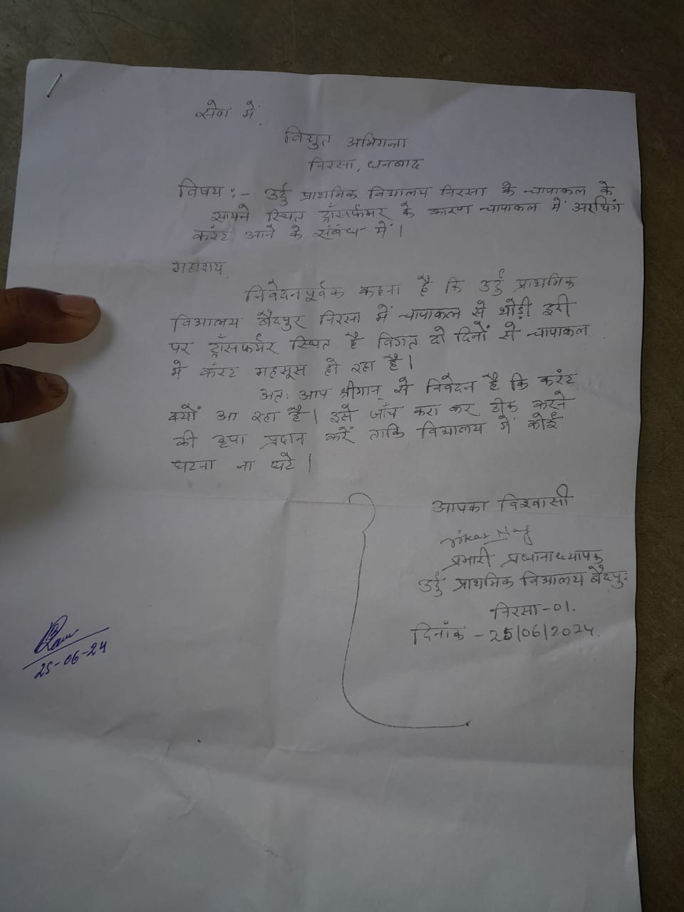 निरसा के बैदपूर गांव के प्राथमिक उर्दू विद्यालय के चापाकल में आई करंट