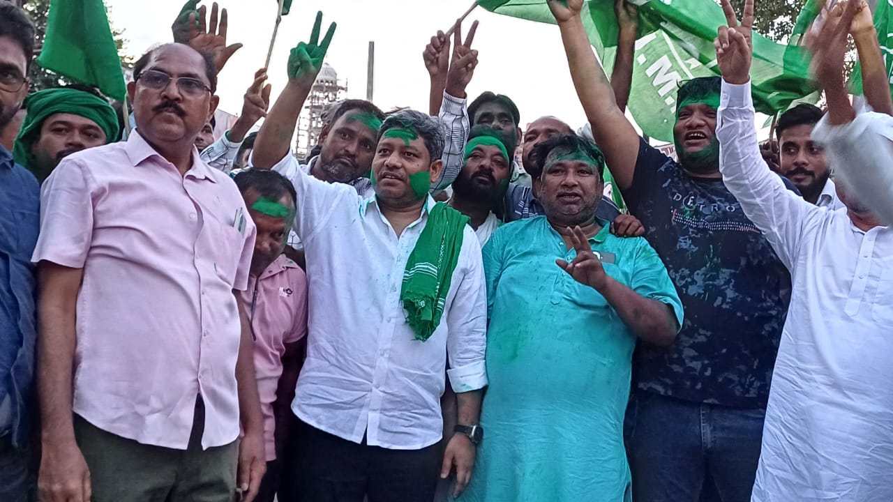 हेमन्त सोरेन की रिहाई पर झामुमो कार्यकर्ताओ ने अबीर लगाकर जाहिर की खुशी