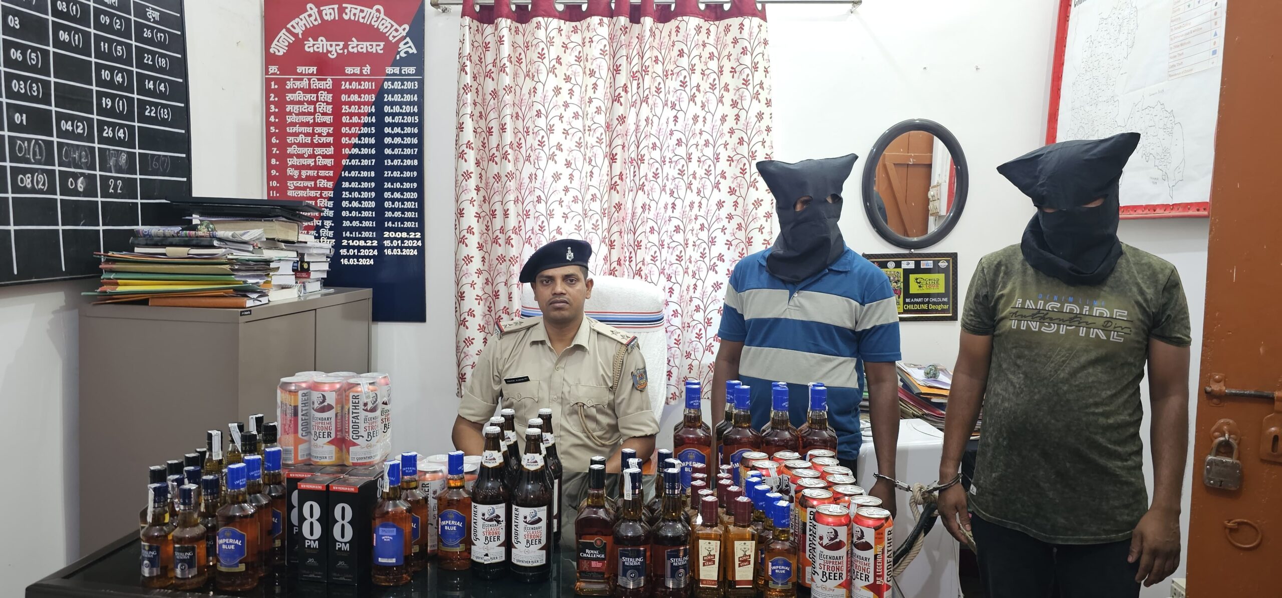 देवघर संवाददाता संजय यादव: देवघर किराना दुकान में सिर्फ घरेलू उपयोग का सामान बिक्री होती है लेकिन देवघर जिले के देवीपुर थाना क्षेत्र में ऐसा किराना दुकान है जहां नशा का कारोबार 24 घंटा उपलब्ध रहता है वही जनरल स्टोर में भी या सुविधा उपलब्ध है। जहां देवीपुर पुलिस को गुप्त सूचना के आधार पर आचार संहिता लगने के बावजूद एवं बिहार मे चुनाव का मतदान को लेकर थाना मुख्यालय स्थित कोल्हड़िया मोड़ स्थित सरकारी विदेशी शराब दुकान के बगल में सुनील मंडल पिता परमेश्वर मंडल अपने जेनरल स्टोर दुकान में अवैध रूप से अंग्रेजी शराब का काफी मात्रा में छापेमारी कर पुलिस ने शराब जप्त की गई है वहीं जानकारी हो कि देवघर पुलिस अधीक्षक के निर्देशानुसार बीती रात को देवीपुर थाना प्रभारी अशोक कुमार के नेतृत्व में छापेमारी टीम का गठन किया गया। मुफस्सिल पुलिस ने छापेमारी कर विदेशी शराब और बीयर किया जब्त